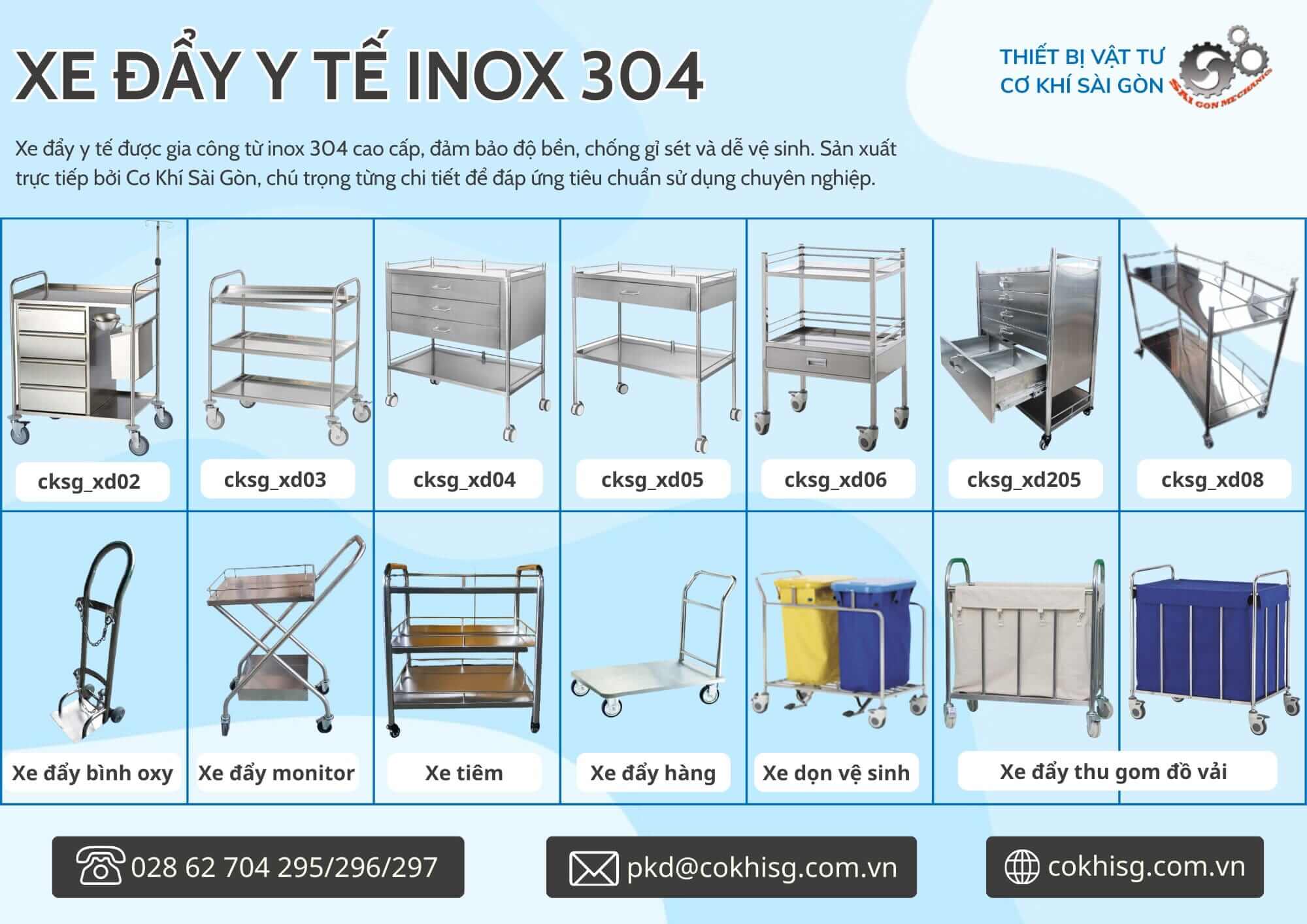 Cơ Khí Sài Gòn chuyên gia công xe đẩy y tế inox 304 với: